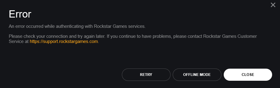 “حدث خطأ أثناء المصادقة مع خدمات Rockstar Games.”