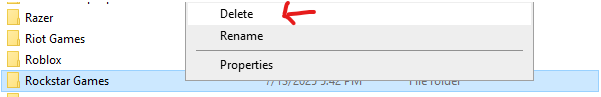 - اضغط على Win + R، اكتب %LocalAppData%، واحذف مجلد Rockstar Games.