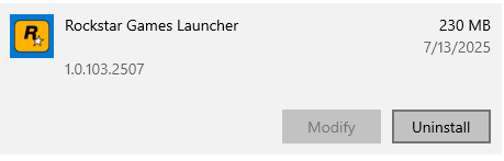- قم بإلغاء تثبيت المشغل عبر الإعدادات > التطبيقات > Rockstar Games Launcher > إلغاء التثبيت.