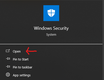 - اكتب أمن Windows في شريط البحث وافتحه.