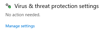 - انقر فوق Virus & threat protection > Manage settings ضمن Virus & threat protection settings.