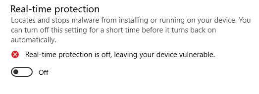 - أوقف تشغيل Real-time protection وحاول تسجيل الدخول مرة أخرى.