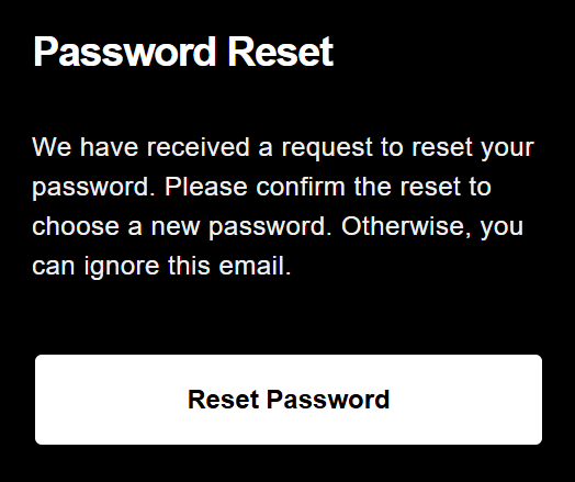 - انقر فوق Reset Password (إعادة تعيين كلمة المرور) في البريد الإلكتروني.