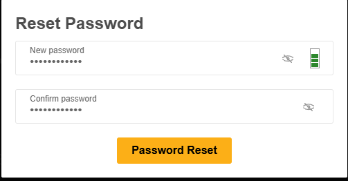 - قم بتعيين كلمة مرور جديدة وقوية وانقر فوق Password Reset (إعادة تعيين كلمة المرور).