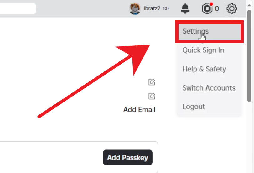 3. انقر على أيقونة الترس (أعلى اليمين) ← الإعدادات.