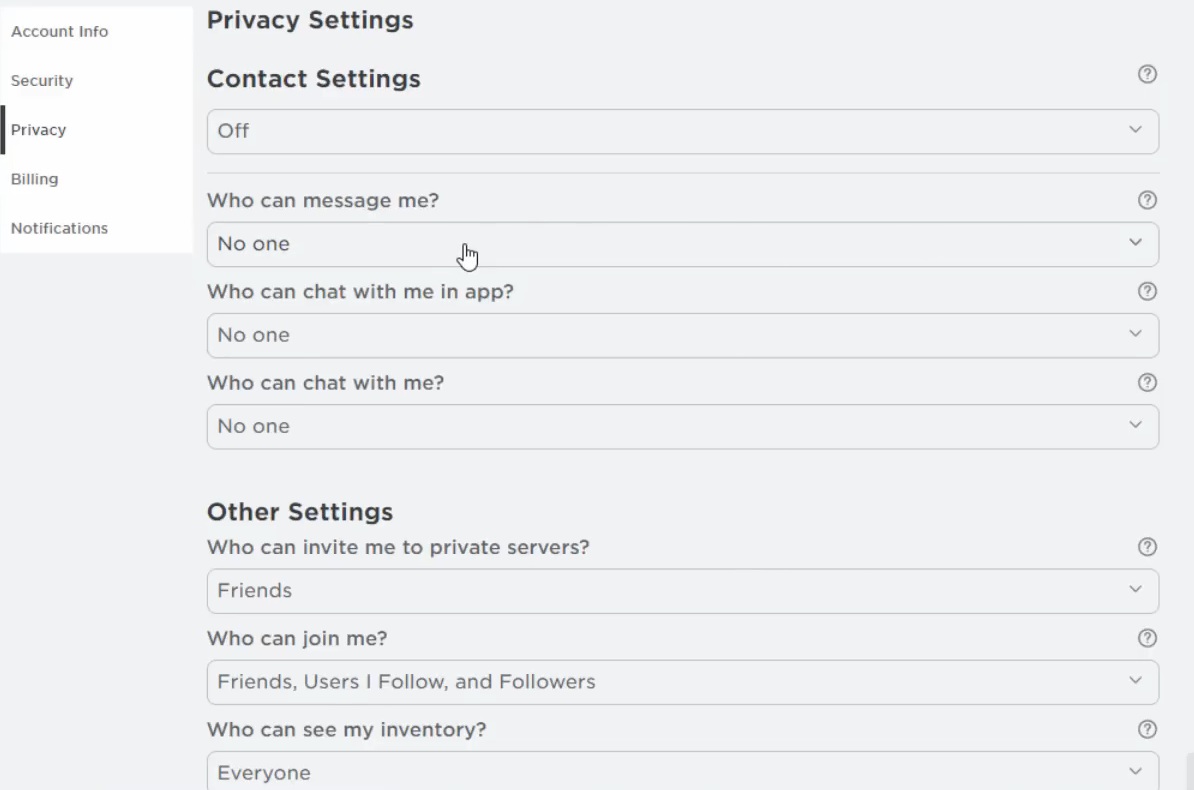 عندما تكون هذه الميزة قيد التشغيل، يُجبر Roblox الحساب على الدخول في وضع الأمان الأكثر صرامة، ويحظر معظم الألعاب، ويضبط جميع إعدادات الاتصال على لا أحد. عادةً ما تكون هذه الميزة مُمكّنة في حسابات الأطفال والملفات الشخصية التي يديرها الآباء.