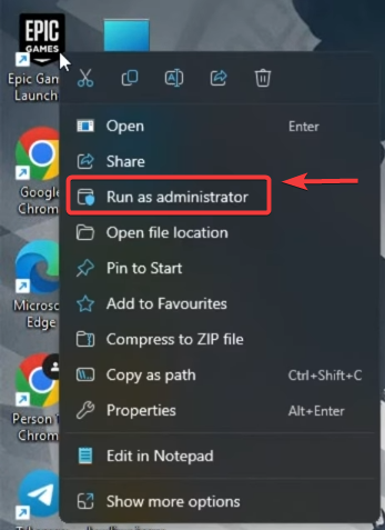 4. تشغيل Epic Games Launcher كمسؤول / إعادة تشغيل جهاز الكمبيوتر
