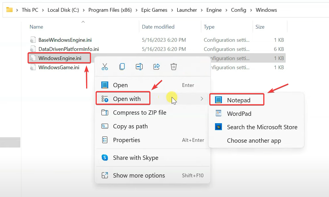 - انقر بزر الماوس الأيمن عليه واختر فتح باستخدام ← Notepad.