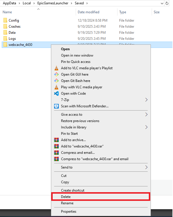 - انتقل إلى EpicGamesLauncher > Saved وأعد تسمية أو احذف مجلد webcache_4430.