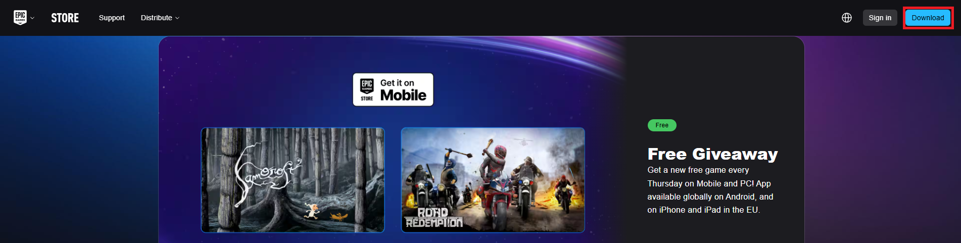 - انتقل إلى صفحة تنزيل Epic Games الرسمية Epic Games download page.