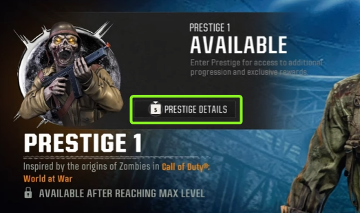 - انتقل إلى مستوى Prestige الحالي الخاص بك واضغط باستمرار على الزر المشار إليه بجوار Prestige Details.