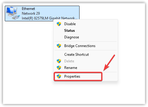 - انقر بزر الماوس الأيمن على اتصال الشبكة النشط لديك وحدد خصائص.