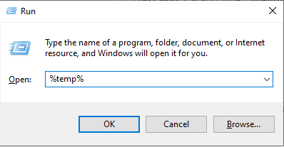 - اضغط على Win + R، واكتب “%temp%”، واضغط على Enter.