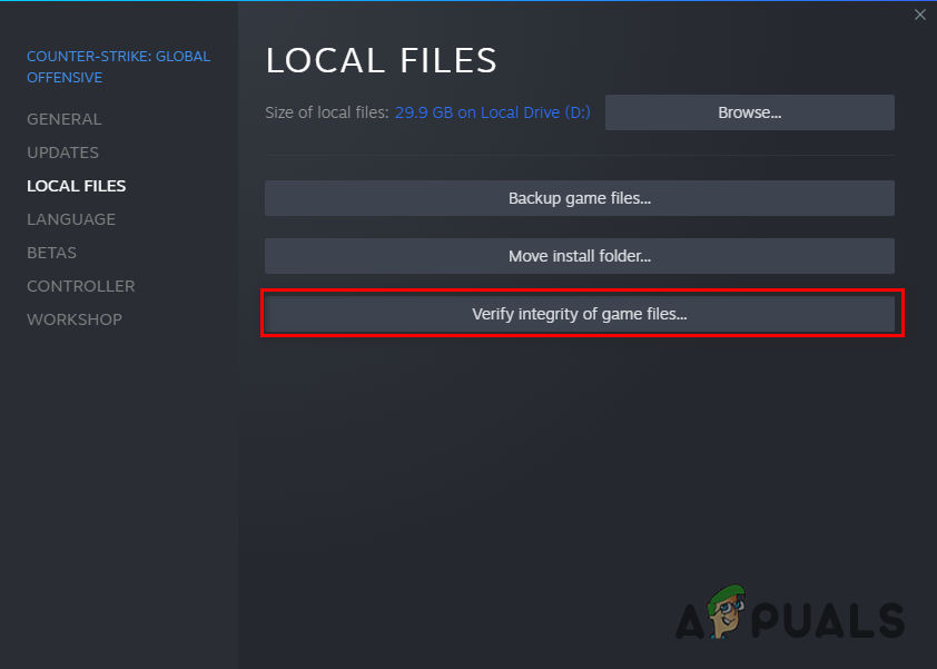 - انقر على التحقق من سلامة ملفات اللعبة.