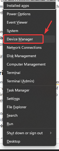 1. اضغط على Windows + X > افتح إدارة الأجهزة.