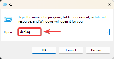 1. اضغط على Windows + R > اكتب dxdiag > اضغط على Enter.