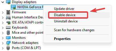 3. انقر بزر الماوس الأيمن على وحدة معالجة الرسومات (GPU) الخاصة بك > تعطيل الجهاز.