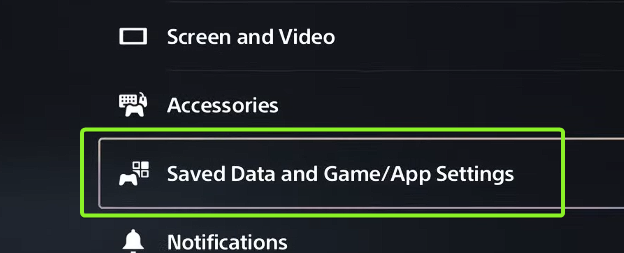 - ارجع إلى قائمة الإعدادات الرئيسية وحدد البيانات المحفوظة وإعدادات الألعاب/التطبيقات.