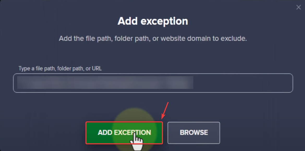 - أضف ما يلي إلى قائمة الاستثناءات: