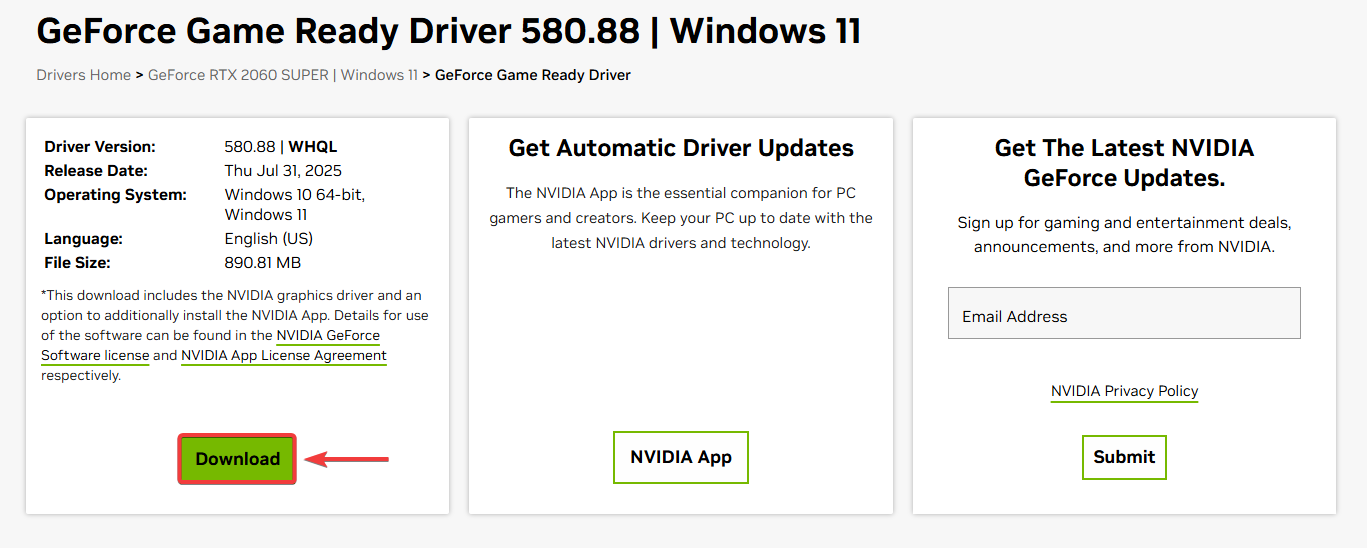 - قم بتنزيل أحدث برنامج تشغيل لطراز بطاقة الرسوميات ونظام التشغيل الخاص بك.