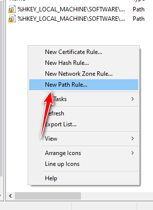 - انقر بزر الماوس الأيمن فوق نهج تقييد البرامج واختر نهج تقييد برامج جديد ← قواعد إضافية.