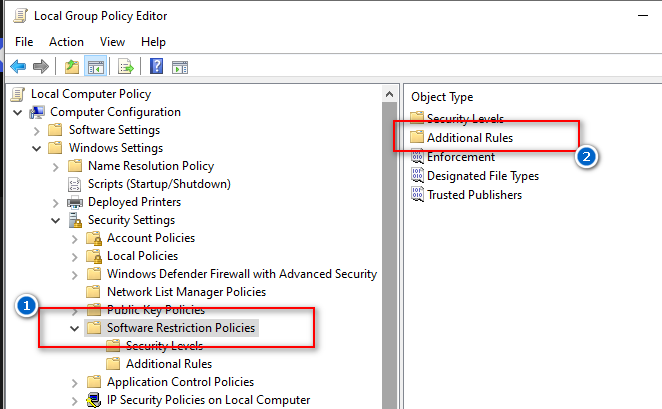 تكوين الكمبيوتر > إعدادات Windows > إعدادات الأمان > سياسات تقييد البرامج