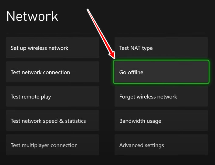 - اختر الانتقال إلى وضع عدم الاتصال وأعد تشغيل جهاز Xbox الخاص بك.