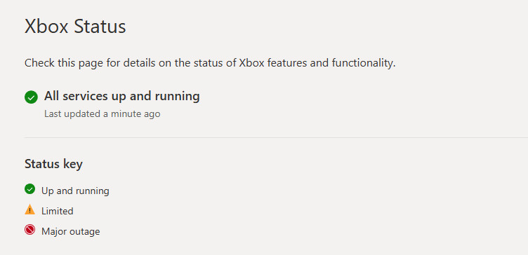 إذا كانت خوادم Xbox تخضع للصيانة أو تواجه انقطاعات مؤقتة، فسيفشل جهازك في التحقق من رموز تسجيل الدخول أو التراخيص الخاصة بك. لذلك، قبل تجربة أي إصلاحات، تأكد من أن خدمات Xbox عبر الإنترنت تعمل بكامل طاقتها. إذا كانت الخوادم معطلة، فالمشكلة تقع على عاتق Microsoft ولا يمكن إصلاحها يدويًا.