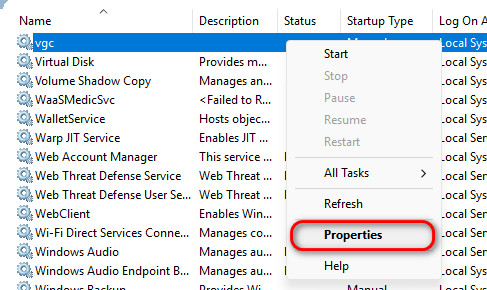 - انتقل للأسفل وابحث عن خدمة vgc.