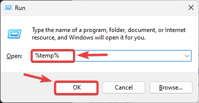 - اكتب %temp% وانقر على OK.