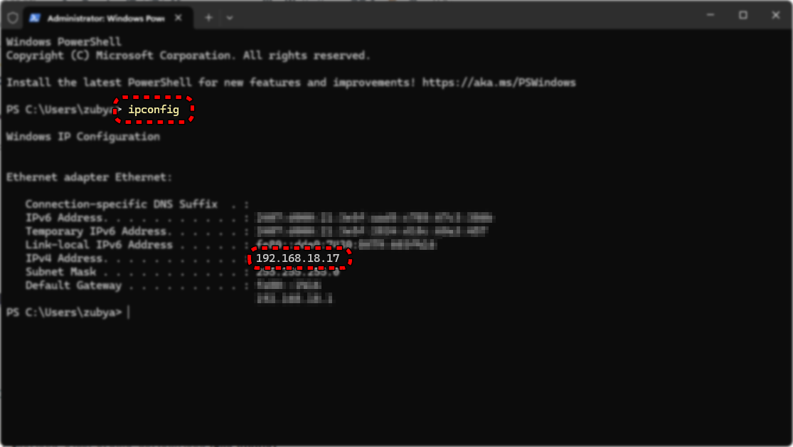 ipconfig. - ابحث عن محولك النشط ودوّن IPv4 Address الخاص بك.