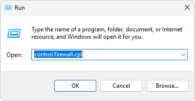 control firewall.cplثم اضغط على Enter.
