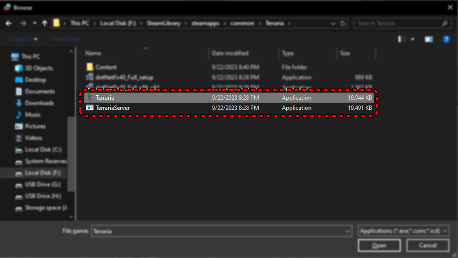 أولاً، انتقل إلى مجلد تثبيت Terraria (عادةً SteamsteamappscommonTerraria) ثم اختر: