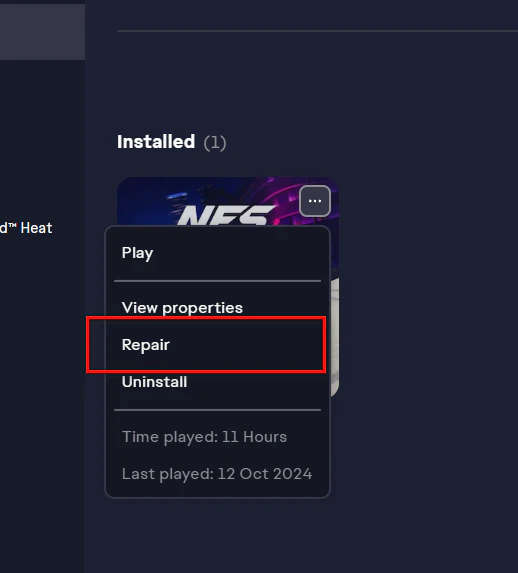 2. EA App: EA app > Library > EA SPORTS FC 26 > Manage > Repair.