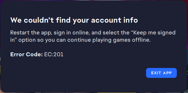 يعتمد EA App على رموز تسجيل الدخول من موقع EA الإلكتروني لمصادقة جلستك. إذا لم يتمكن من استرداد هذه الرموز أو التحقق منها، فقد تواجه خطأ EC:201. يساعد تسجيل الدخول عبر المتصفح واختيار “Keep me signed in” في إنشاء جلسة مستمرة يمكن للتطبيق التعرف عليها.