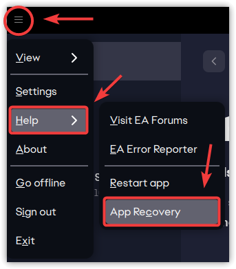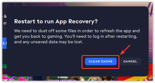 4. استخدام استرداد التطبيق (App Recovery) في EA App لمسح ذاكرة التخزين المؤقت