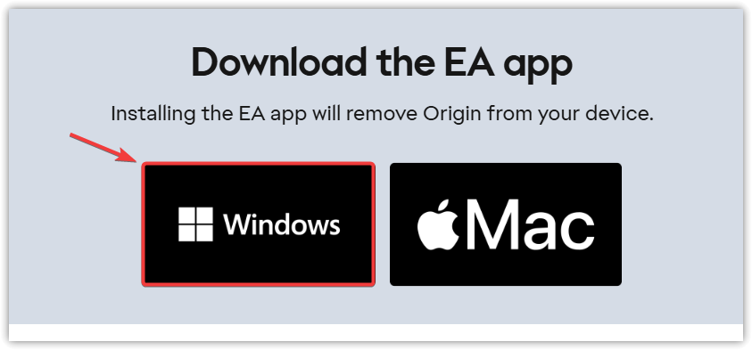 - زر صفحة تنزيل EA App الرسمية في متصفحك.