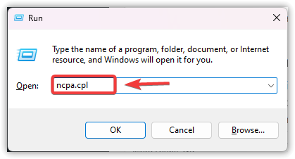 - اضغط على Windows + R، واكتب ncpa.cpl، ثم اضغط على Enter.