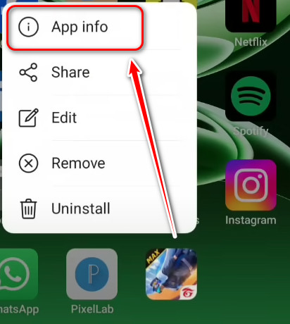 - اضغط مطولاً على أيقونة تطبيق Free Fire.