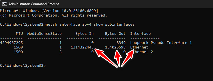 netsh interface ipv4 show subinterfaces