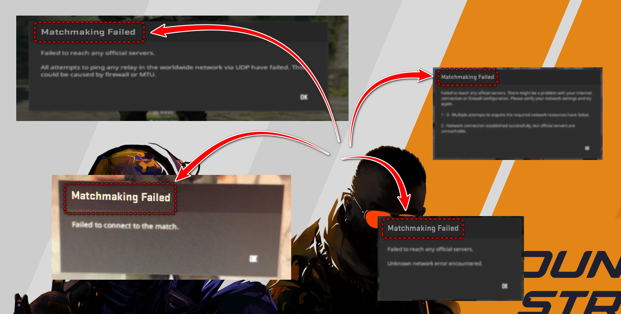 إذا تعرضت أي من ملفات CS2 المتعلقة بـ الشبكات، أو البحث عن المباريات، أو مكافحة الغش للتلف أو الفقدان، فقد تفشل CS2 في الفحوصات الداخلية قبل الاتصال بخوادم Valve.