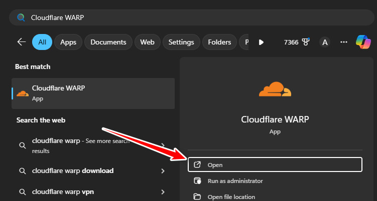 - افتح تطبيق VPN الخاص بك (Cloudflare WARP، NordVPN، إلخ).