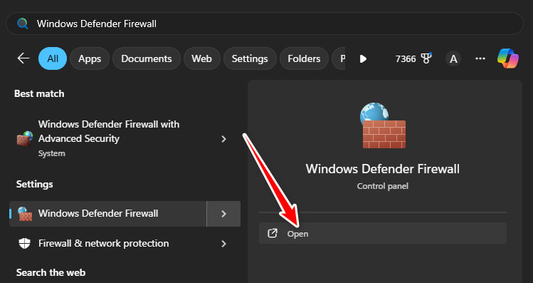 - افتح جدار حماية Windows Defender.