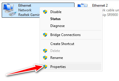 - انقر بزر الماوس الأيمن على اتصالك النشط (Wi-Fi أو Ethernet) ← خصائص.