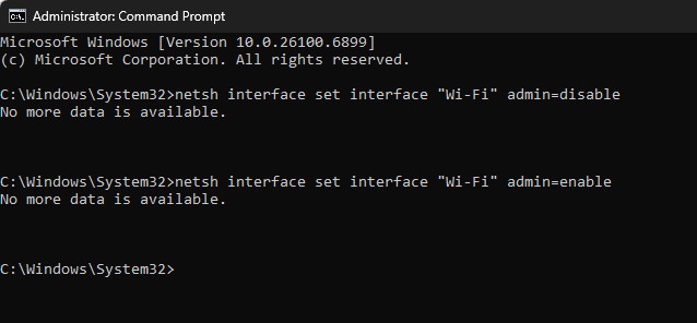 netsh interface set interface "Ethernet" admin=disable