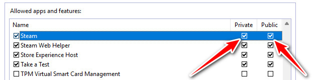 - انقر على تغيير الإعدادات وتأكد من تحديد Steam و CS2 لشبكات الخاصة و العامة.