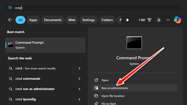 - افتح موجه الأوامر (Command Prompt) كمسؤول إذا لم يكن مفتوحًا بالفعل.