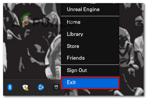 1. اخرج من Epic Games Launcher (انقر بزر الماوس الأيمن فوق رمز الدرج > خروج).