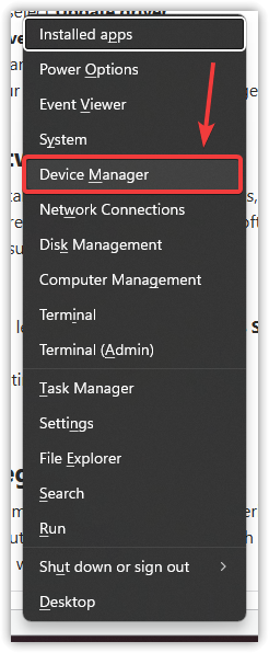 - اضغط على مفتاحي Win + X وحدد إدارة الأجهزة.