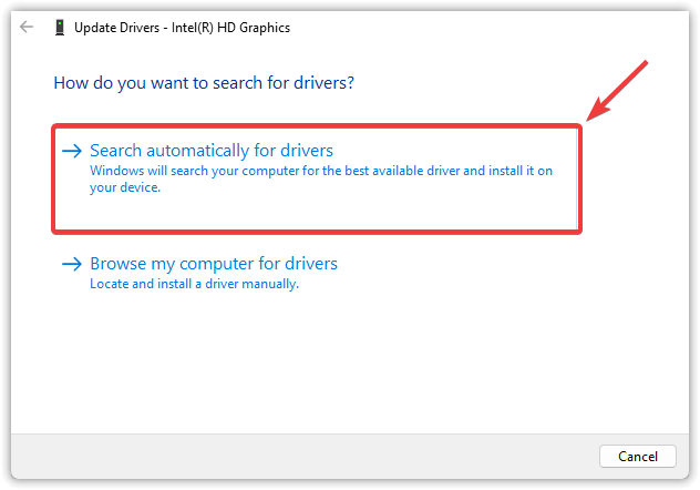 - انقر فوق البحث تلقائيًا عن برامج التشغيل.